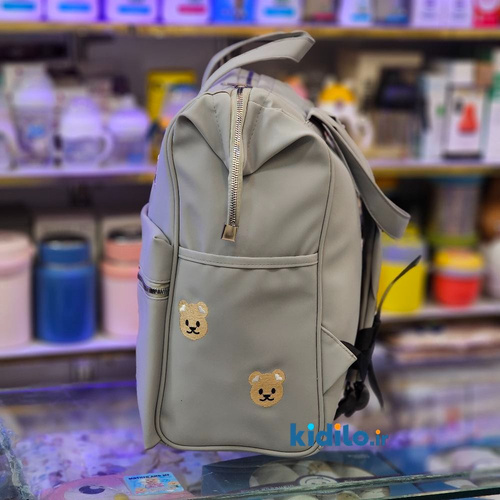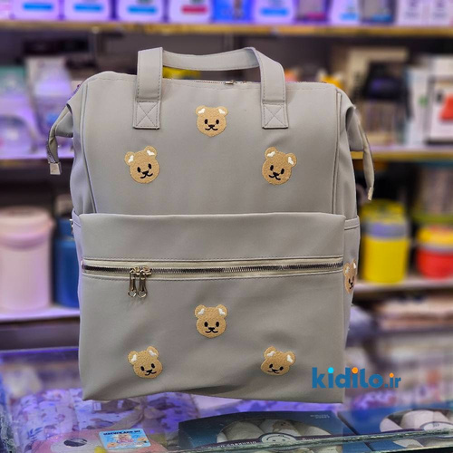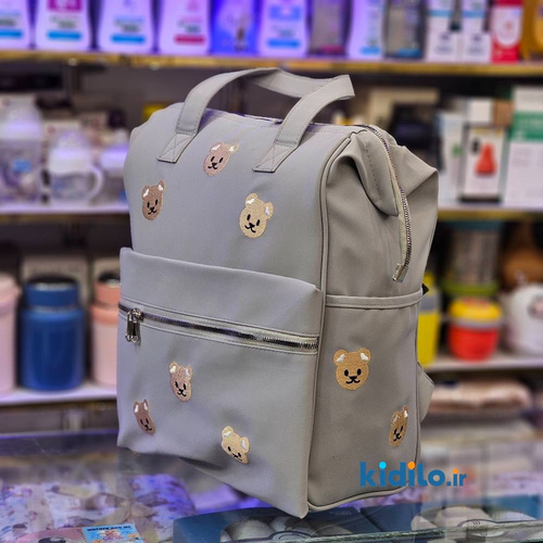 کوله پشتی لوازم کودک طرح تدی پارچه نانسی ضدآب - طوسی