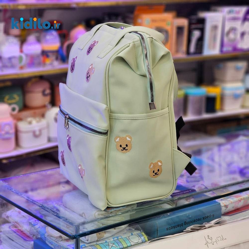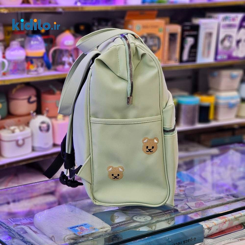 کوله پشتی لوازم کودک طرح تدی پارچه نانسی ضدآب - سبز